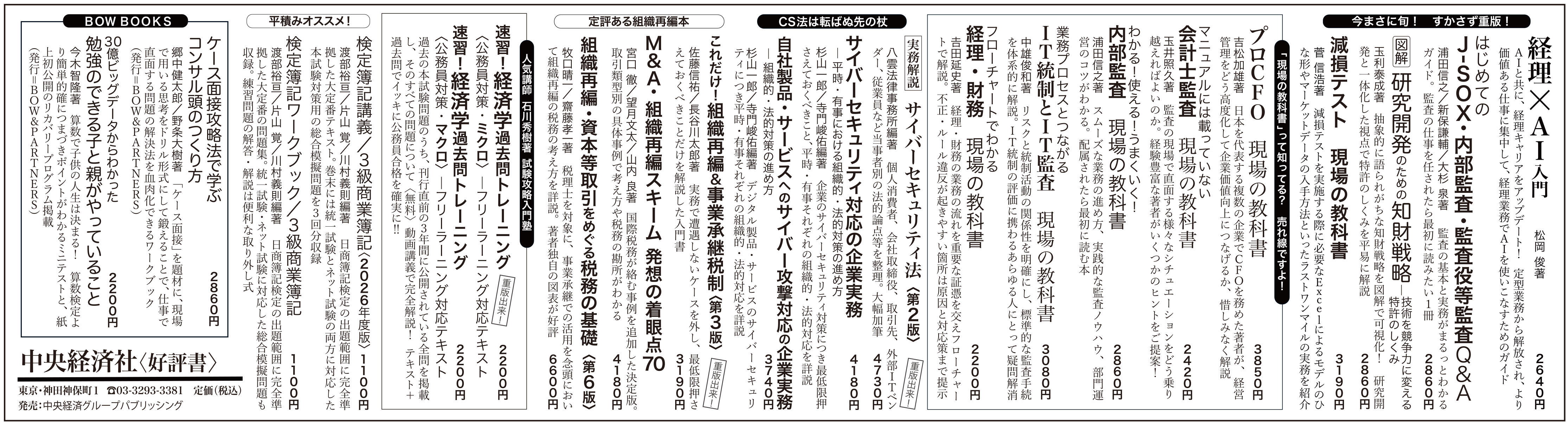 日本経済新聞/朝刊1面書籍・雑誌小枠広告