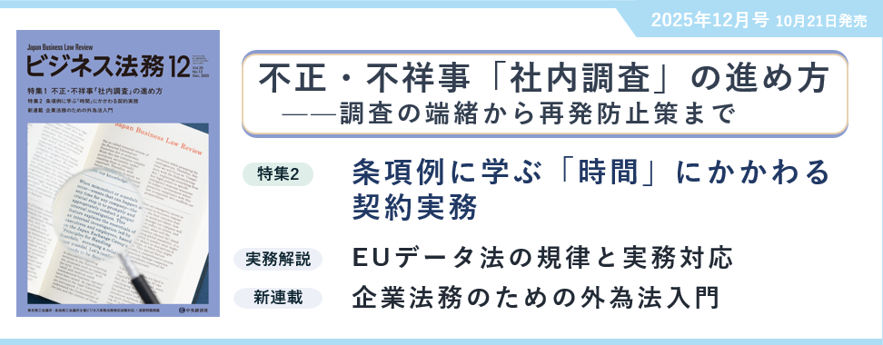 そこで本特集では,「時間」にかかわる契約実務について,それぞれで具体的な条文例を挙げつつ,コンパクトにまとめました。実務を振り返りつつ,要点を押さえましょう。