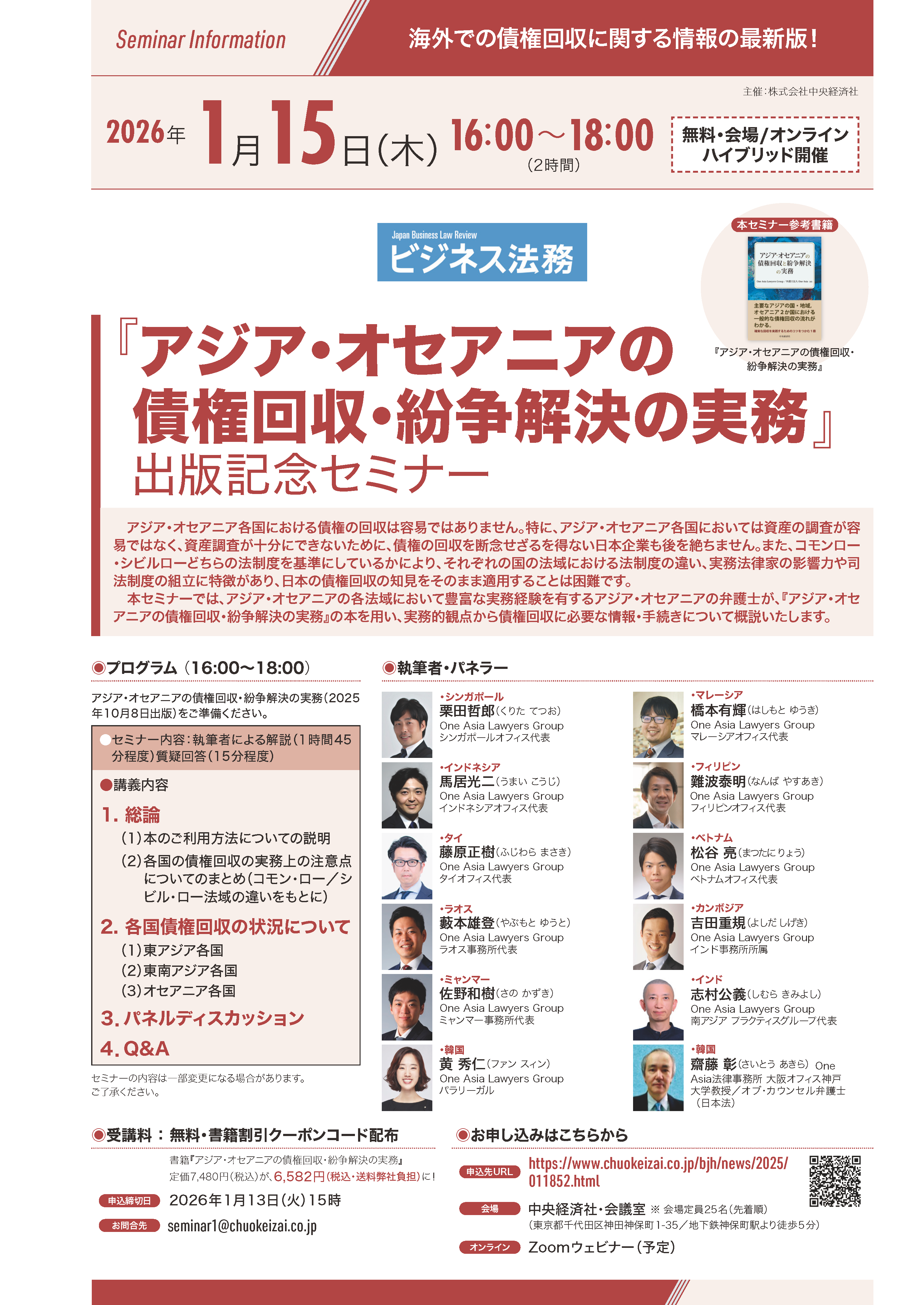 2026年1月15日(木) 『アジア・オセアニアの債権回収・紛争解決の実務』出版記念セミナー