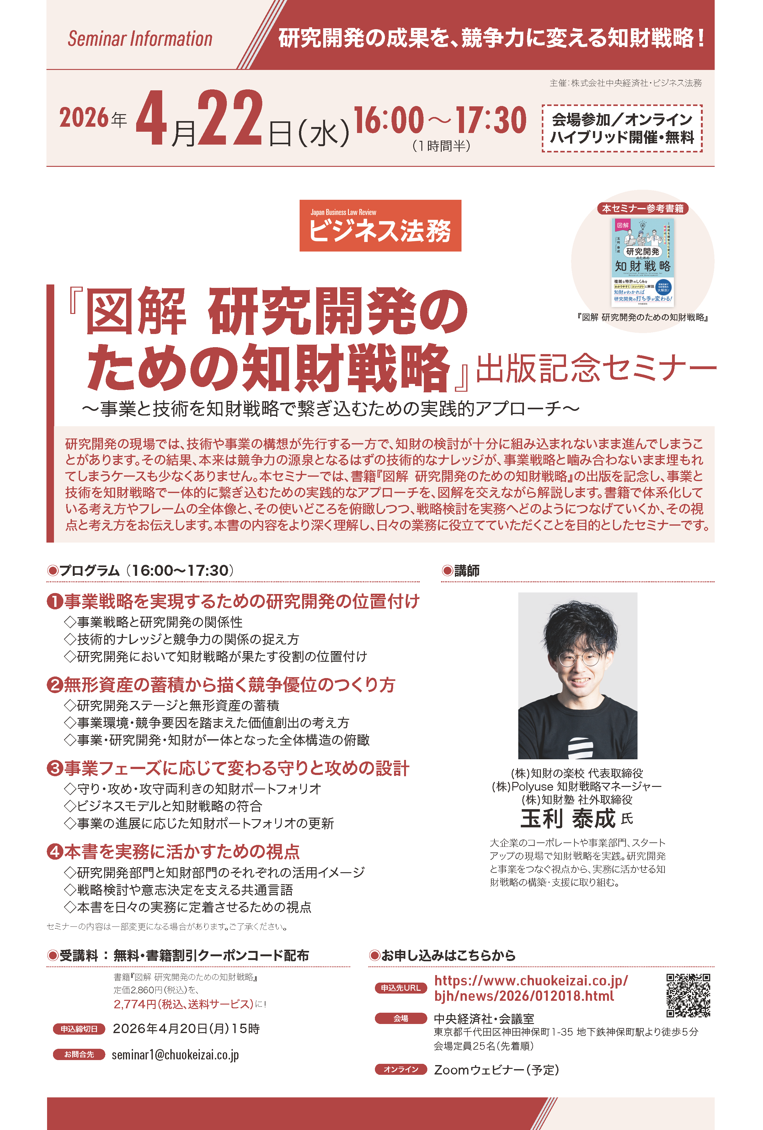 2026年4月22日(水)『図解 研究開発のための知財戦略』出版記念セミナー