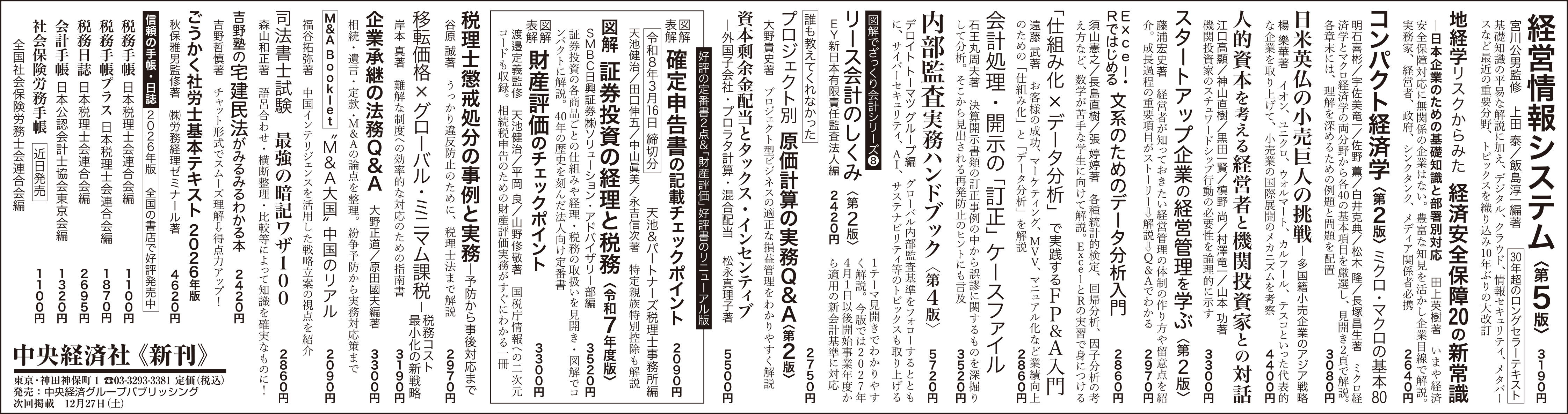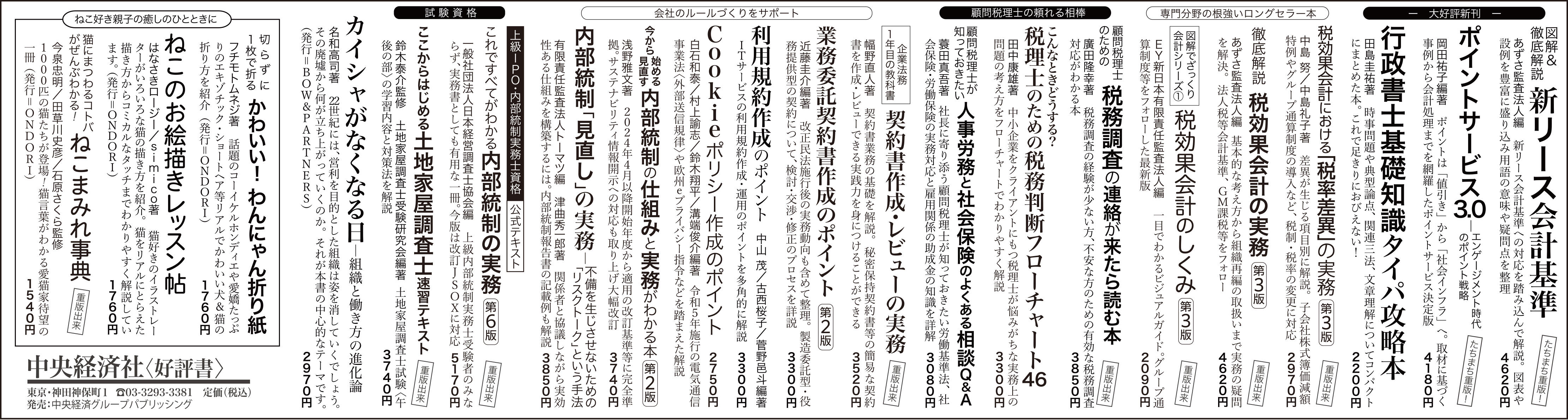 新刊書籍・雑誌は、定期的に新聞広告をしています。とくに毎月第4土曜日の日本経済新聞朝刊は1面全3段を利用した特色ある出版広告です。このほか定期的に雑誌の小枠広告を行っています。