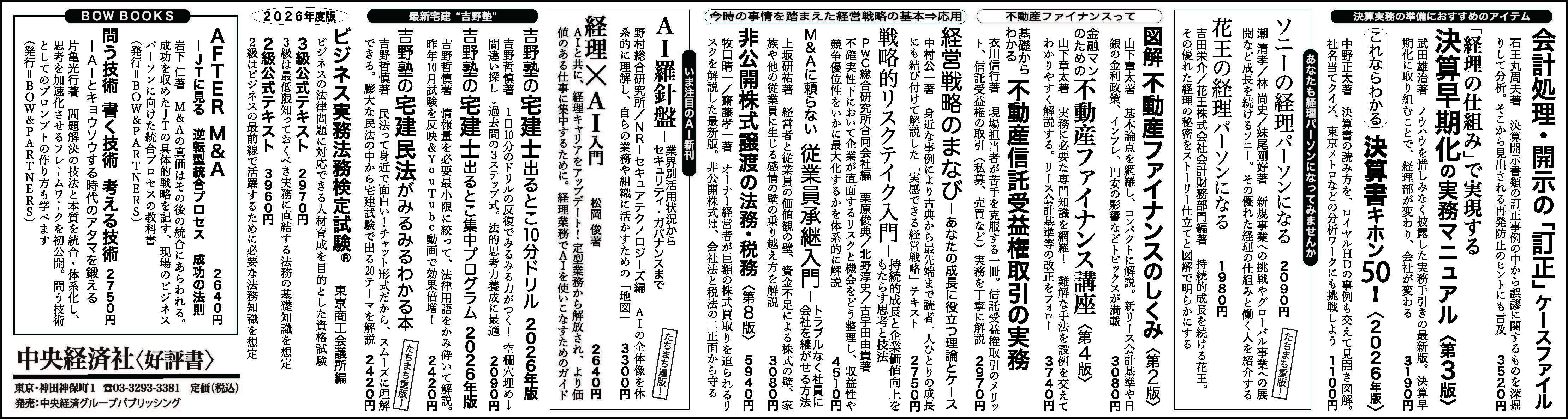 日本経済新聞/朝刊1面書籍・雑誌小枠広告
